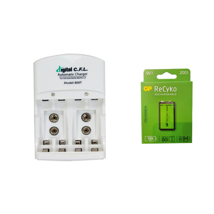 شارژر باتری سی اف ال مدل 800T به همراه باتری کتابی قابل شارژ جی پی 9 ولت 20R8H