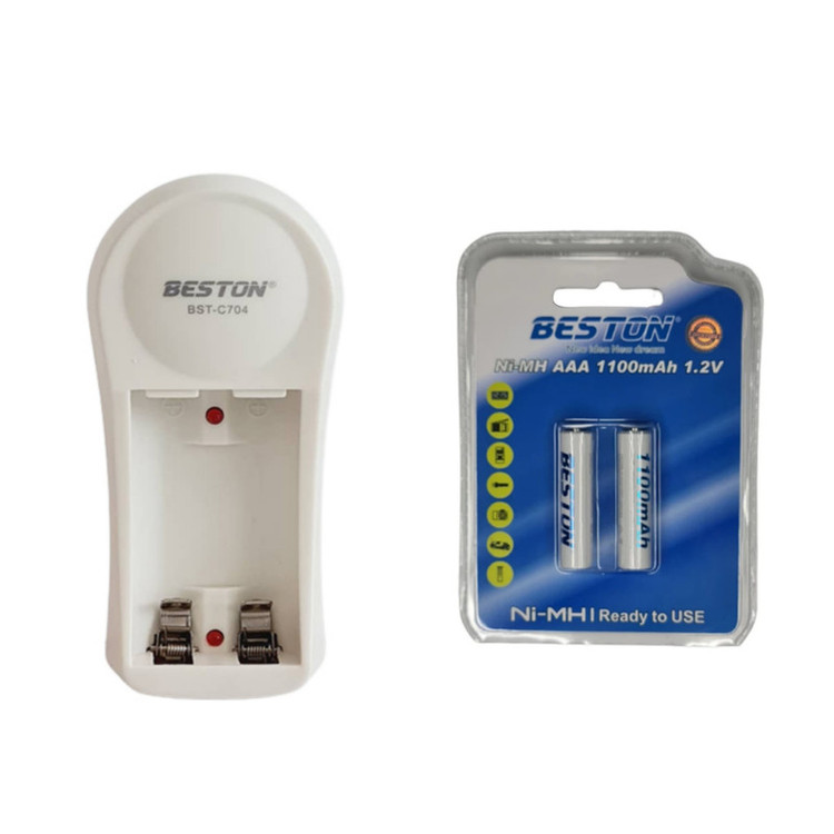 شارژر باتری بستون مدل C704 به همراه باتری نیمقلمی قابل شارژ 1100mAh