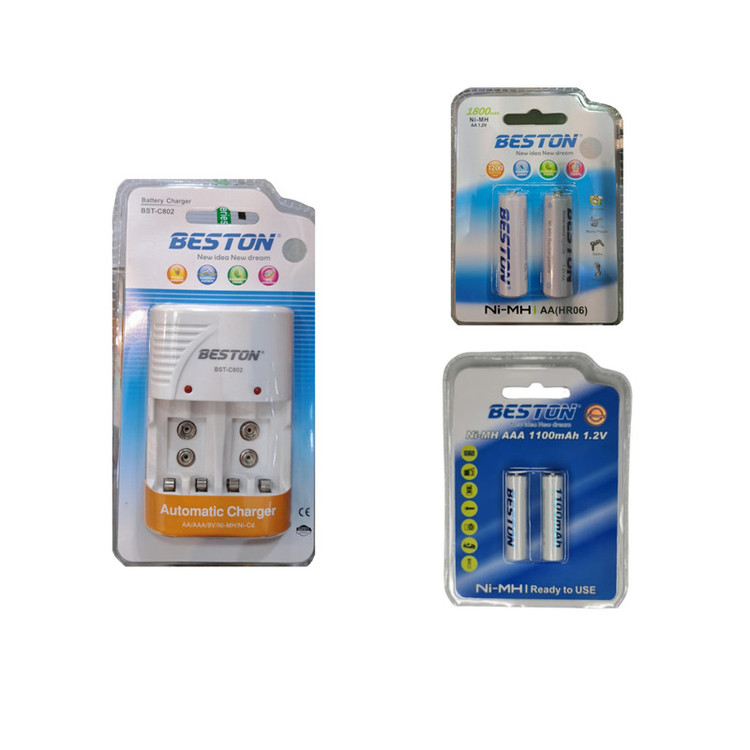 شارژر باتری بستون مدل C802 به همراه باتری قلمی 1800mAh و نیم قلمی 1100mAh