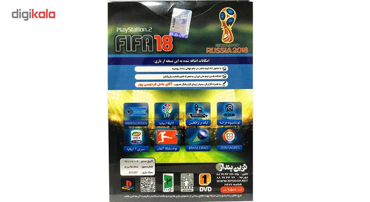 نام بازی : FIFA 18پلتفرم : ps2زبان : فارسیتاریخ انتشار : ۲۶ سپتامبر ۲۰۱۷شرکت سازنده : Electronic artsمنتشر کننده : Electronic artsسبک بازی : ورزشیشماره مجوز: ۹۶ / ۶۶۸ / ن م توضیحات بازی پلی استیشن ۲ FIFA 18 جام جهانی ۲۰۱۸ روسیه گزارش عادل فردوسی پورfifa 2018 یا FIFA Football سری از بازی های فوتبالی یا بازی های شبیه ساز فوتبال می باشد که بطور سالانه توسط کمپانی Electronic arts و تحت لیبل Ea Sports منتشر می شود . هنگامی که کمپانی EA وارد ساخت بازی های ورزشی مانند سری Madden NFL و NHL شد استودیوهای بسیاری برای رقابت با این عناوین وجود نداشتند ، اما هنگامی که شروع به ساخت سری FIFA کرد بازی های مانند Sensible Soccer , Kick Off و Match Day از اوایل دهه ۸۰ در حال ساخت بوده اند ، به همین دلیل بازار رقابت برای بازی فوتبالی بعدی کمپانی EA بسیار داغ بود .هنگامی که این سری کار خود را در سال ۱۹۹۳ آغاز کرد نکته قابل توجه اش این بود که اولین بازی فوتبالی بود که بطور رسمی تیم های فوتبال و بازیکنان آنها را لایسنس کرده بود اما با انتشار سالانه این سری این عنوان به قدری پیشرفت کرده است که در آخرین عنوان منتشر شده در این سری ما شاهد لیگ های زیادی از سرتاسر دنیا بوده ایم که به طور انحصاری برای این بازی لایسنس شده اند . سری اصلی این بازی متمرکز بر روی لیگ های جهان می باشد که با بسته های الحاقی مانند بازی پلی استیشن ۲ FIFA 18 جام جهانی ۲۰۱۸ روسیه گزارش عادل فردوسی پور , UEFA European Football Championship و UEFA Champions League کامل شده اند .تا سال ۲۰۱۱ سری فیفا به هجده زبان زنده دنیا ترجمه شده است و در پنجاه و یک کشور دنیا در دسترس علاقه مندان قرار گرفته است . این سری در زمینه فروش موفق به کسب عدد ۱۰۰ میلیون کپی شده است که این بازی را در جایگاه پرفروش ترین بازی ورزشی تاریخ و همچنین یکی از پرفروش ترین بازی ها در تاریخ بازی های رایانه ای قرار داده است .