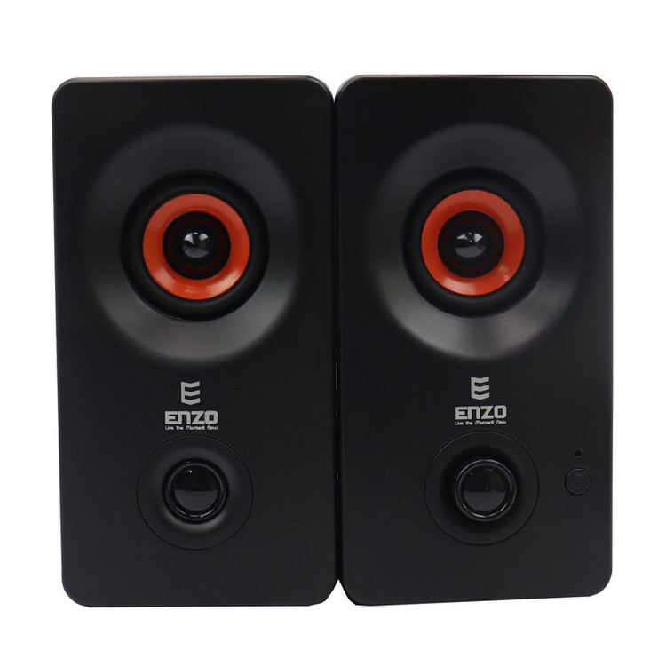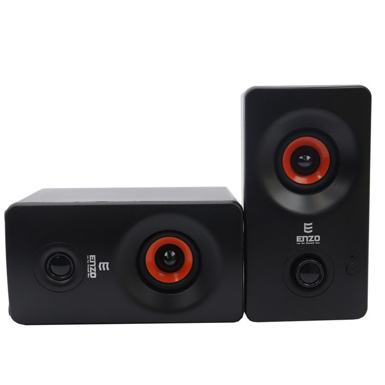 اسپیکر دسکتاپ دو تکه مدل AC-9002BT از برند انزو، طراحی شیک با بدنه ای از متریال باکیفیت را به همراه دارد که توسط بلوتوث نسخه ۴٫۲ به گوشی های موبایل، رایانه ها و دیگر دستگاه های سازگار متصل می شود. همچنین از طریق رابط جک ۳٫۵ میلی متری صدا نیز قادرید به رایانه، گوشی و … متصل شوید. دو عدد بلندگو با توان خروجی کلی برابر با ۱۰ وات، محدوده پاسخگویی فرکانسی ۲۰ هرتز تا ۲۰ کیلوهرتز، امپدانس ۴ اهم و حساسیت سیگنال به نویز ۵۸ دسی بل، همگی نشان از کیفیت و شفافیت صدای خروجی اسپیکر دسکتاپ انزو می دهد. این اسپیکر کوچک با پوشش تمامی رنج های داینامیکی صدا زیر و بم موسیقی را به خوبی مانیتور و پخش خواهد کرد. دکمه خاموش/روشن بر روی AC-9002BT قرار داشته و منبع انرژی آن از طریق اتصال به برق شهری با ولتاژ ۱۱۰ تا ۲۲۰ ولت تامین خواهد شد.