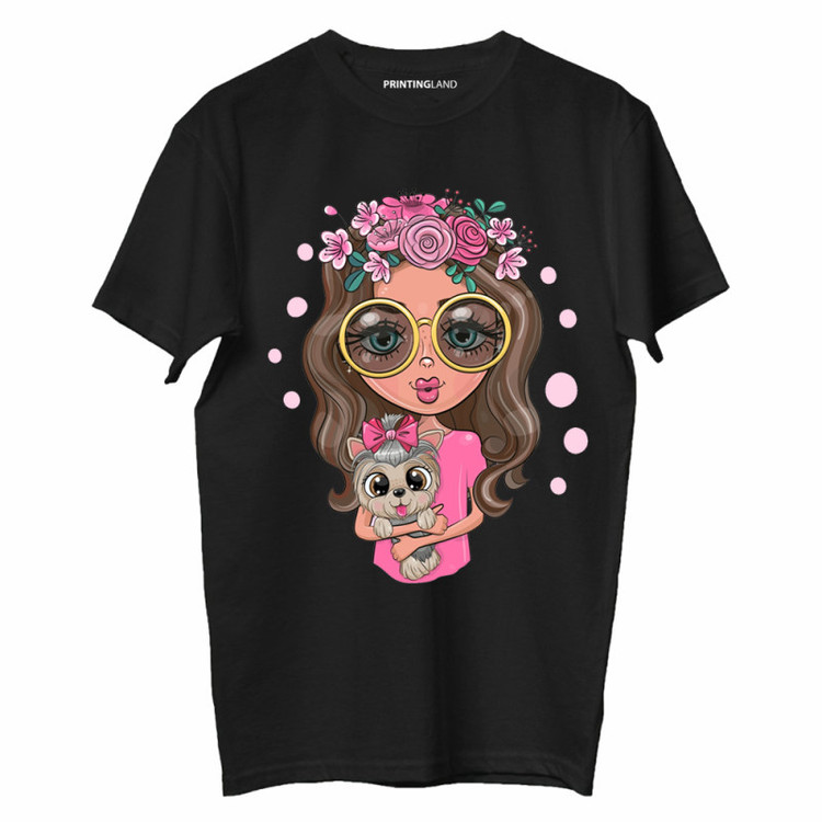تیشرت آستین کوتاه زنانه طرح دختر بامزه Cute Girl کد F46