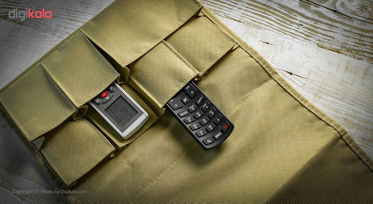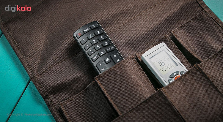 با در اختیار داشتن محصول فوق میتوانید به محلات و ریموت کنترلهای محیط خانه یا اداره نظم بیشتری ببخشید. محصول فوق یکی از انواع ارگانایزرها بوده که بسیار کاربردی طراحی شده است. این جای ریموت کنترل دارای 7 جای ریموت است. 4 عدد از این جیبها ابعادی برابر 18 × 7.5 سانتیمتری دارند و به خوبی میتوانند ریموت کنترل را پوشش دهند. سایز دیگر جیبها برابر 11 × 7.5 و 11 × 15.5 سانتیمتر است که ارتفاع کمتری دارند. از جیب 11 × 15.5 سانتیمتر میتوانید برای قرار دادن دفترچه یادداشت و خودکار نیز استفاده کنید. از دیگر مزایای این محصول میتوان به وجود یک محفظه برای قرار دادن مجله اشاره کرد. این بخش ابعادی برابر 25 × 32 سانتیمتری دارد. در ساخت این ارگانایزر از پارچهی مستحکمی استفاده شده است تا طول عمر بالایی داشته باشد. این ارگانایزر را میتوانید روی دستهی مبل یا صندلی قرار دهید. تولیدکنندگان این محصول برای حفظ تعادل آن از یک میلهی فلزی استفاده کردهاند که در بخش داخلی ارگانایزر به کار رفته است. این محصول تحت عنوان مدل RC1 به بازار عرضه میشود.