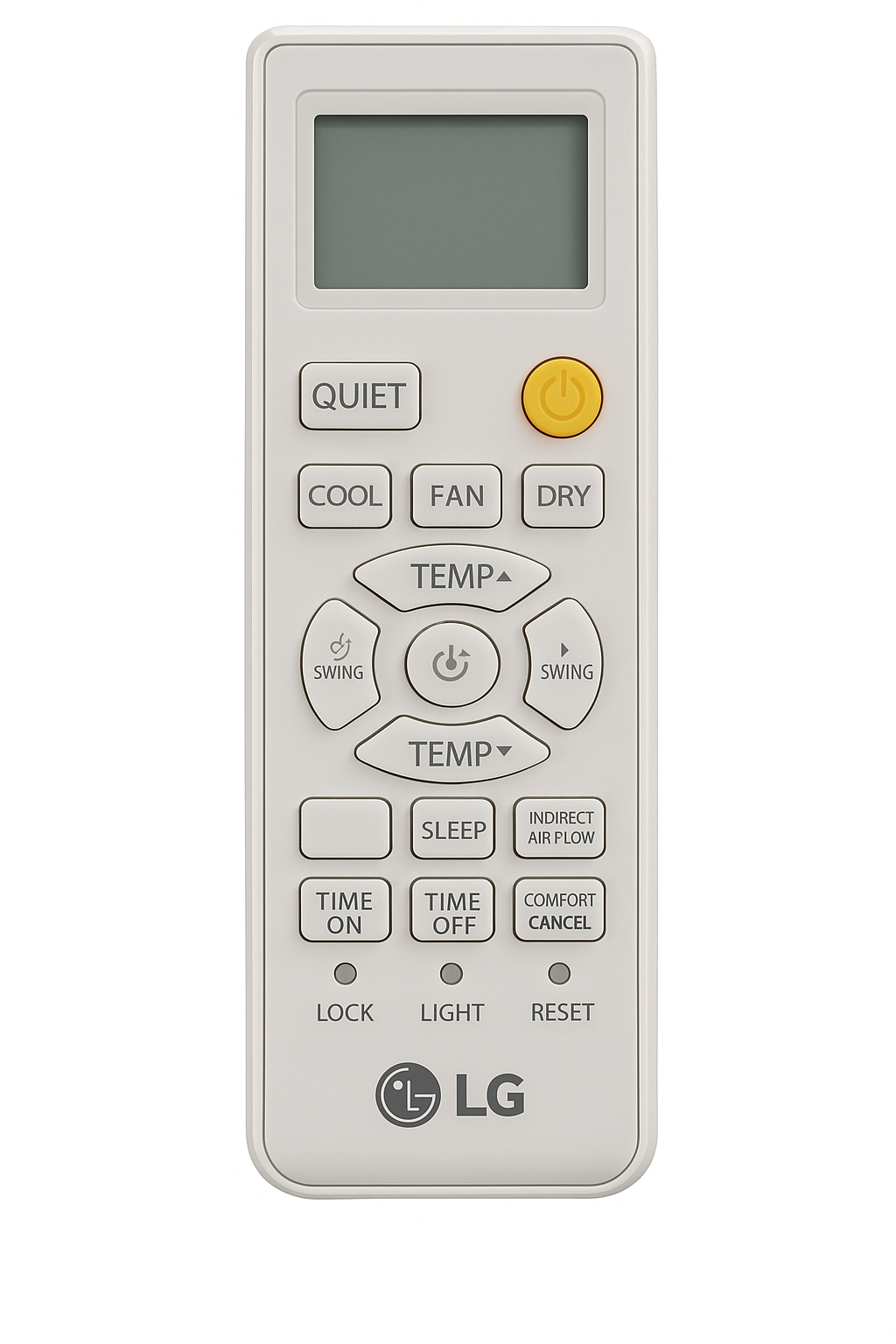 ریموت کنترل LG مدل A با بیشتر مدلهای کولر گازی ال جی سازگار بوده و عملکردهایی مثل تنظیم دما، حالت خواب، تایمر روشن و خاموش، نوسان باد (SWING)، تنظیم شدت فن، حالت بیصدا (QUIET) و حالتهای مختلف کاری مانند COOL، FAN، DRY را در اختیار کاربر میگذارد.