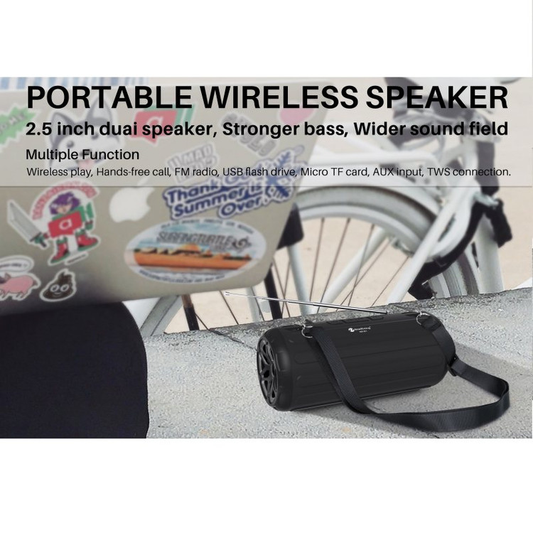 اسپیکر ها که به یکی از محصولات پر مصرف جوامع مختلف دنیا تبدیل شده اند امروزه قابلیت های متفاوتی را به ما ارائه می دهند. اسپیکر NEWRIXING NR-B1 یک بلندگو با قابلیت پخش موسیقی از فلش مموری و USB است ولی این درگاه تنها ورودی این اسپیکر نیست و شما می توانید با اتصال به بلوتوث دستگاه یا به وسیله یک کابل صدای AUX موسیقی مورد نظر خود را پخش کنید و از آن لذت ببرید. NEWRIXING NR-B1 یک اسپیکر دارای محلی برای نصب بند رو دوشی می باشد که حمل آن را بسیار آسان میکند و همچنین یک عدد بند در کارتن این اسپیکر قرار داده شده است.. صدای این اسپیکر به لطف بلندگوهایی با توان خروجی 2x3 واتی موسیقی را با کیفیت مناسبی برای شما پخش می کند. شما می توانید بدون نیاز به برق نیز به لطف باتری داخلی آن ساعت ها به موسیقی گوش فرا دهید. پورت های ورودی این اسپیکر در پشت آن قرار دارد و شما می توانید فلش USB یا کابل صدای AUX و مموری کارت خود را به دستگاه منتقل کنید. اسپیکر وایرلس NEWRIXING NR-B1 به صورتی طراحی شده است تا شما بتوانید از آن بر روی سطح های مختلفی استفاده کنید مخصوصا سطوح صاف که به خوبی روی آن خواهد ایستاد. شما می توانیدبا متصل کردن تلفن همراه خود یا رایانه شخصی که دارای بلوتوث باشد از این اسپیکر بدون نیاز به اتصال سیم استفاده کنید. قابلیت پخش صدا در هنگام مکالمه نیز از ویژگی های این اسپیکر است تا زمانی که شما در حال گوش دادن به موسیقی تماسی دریافت می کنید به آن پاسخ داده با اتمام آن بدون نیاز به اتصال مجدد به موسیقی خود گوش بسپارید. همپنین با دکمه هایی که بر روی این اسپیکر طراحی شده است سما می توانید تماس های خود را به راحتی کنترل کنید. در انتها اسپیکر NR-B1 یک اسپیکر همه چیز تمام می باشد.