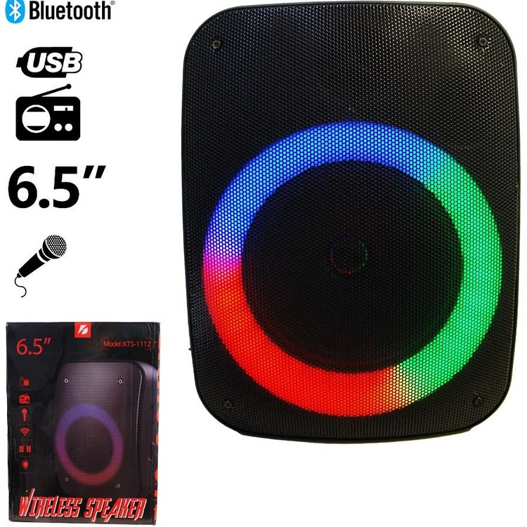 کمپانی کی تی اس همواره سعی بر تولید اسپیکر های با کیفیت و جذاب و متنوع برای تمامی سلیقه ها داشته است. KTS-1112 یکی از جدیدترین مدل های این کمپانی است که با 6.5 اینچ قدرت پرتاب صدا وضوح با کیفیتی را در فضاهای باز و بسته برای شما فراهم میسازد. رقص نور رینگ لایتی جذاب و متغیر آن به همراه میکروفونی که داخل آن تعبیه شده آن را به یک اسپیکر با قابلیت بالا و زیبا تبدیل کرده است.