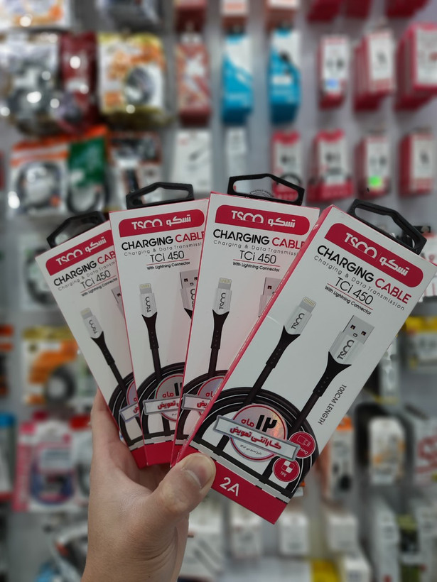 کابل شارژ تسکو مدل TCI 450 بطول ۱ متر و رشته های مسی آن با استفاده از روکشی بافته شده پوشانده شده اند.