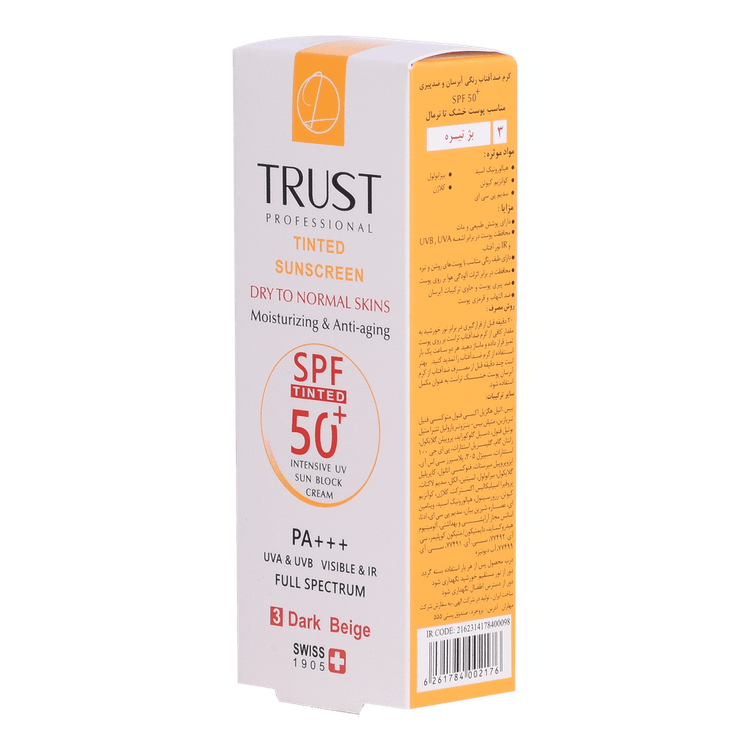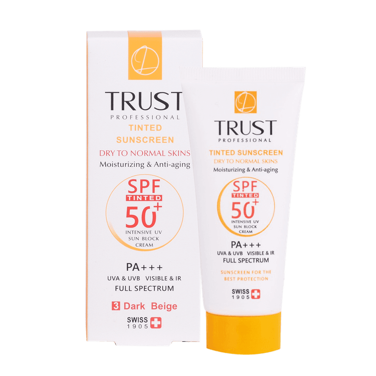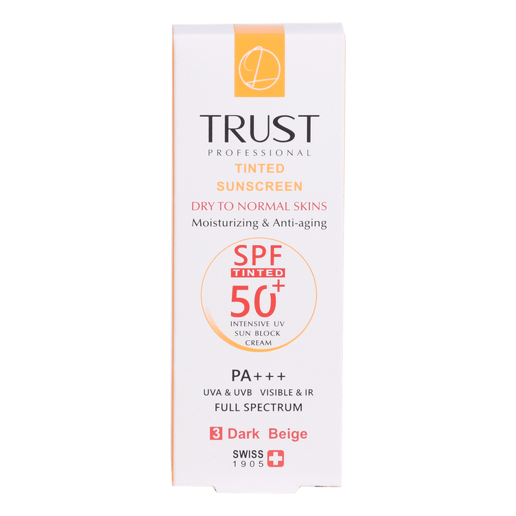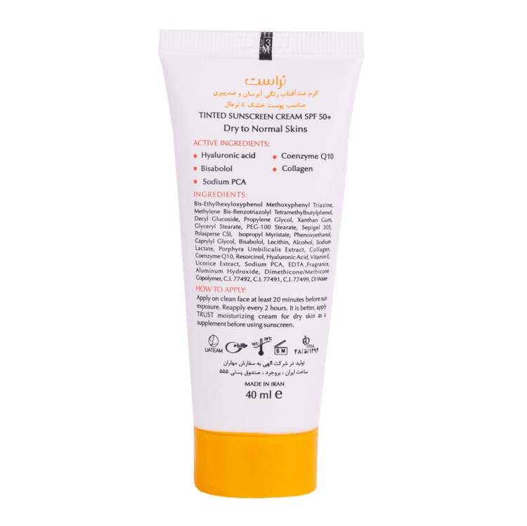 کرمهای ضدآفتاب رنگی تراست با SPF50+ از مرغوبترین و جدیدترین مواد اولیه موثره دارای حداکثر حفاظت دربرابر پرتوهای مضر خورشید ساخته شدهاند؛ این کرم با وجود بهرهمندی از بافتی سبک، دربرابر آسیبهای وارده توسط نور خورشید به خوبی از پوست محافظت و با مهار رادیکالهای آزاد از تخریب سلولهای پوستی جلوگیری میکند. همچنین با مصرف این محصول، بدون بسته شدن منافذ پوستی و ایجاد خلل در تنفس سلولهای پوستی، پوستتان آبرسانی میشود.