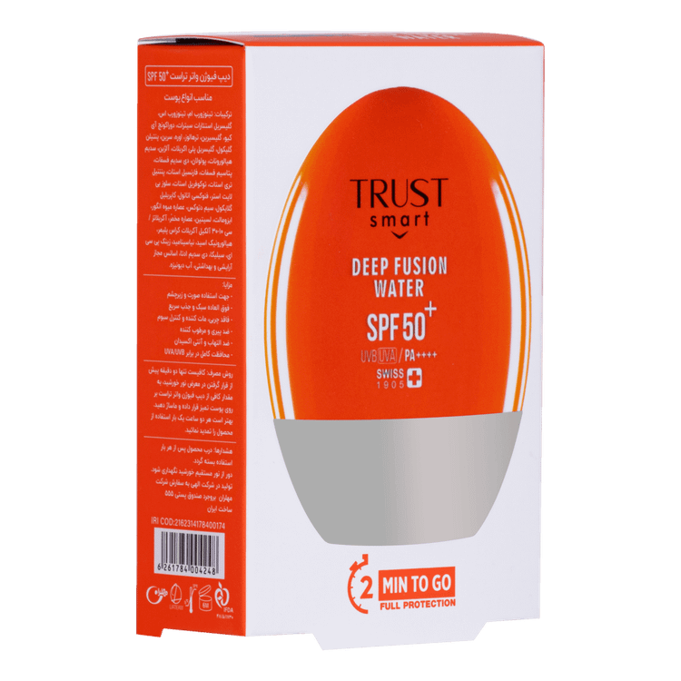 ۲ دقیقه قبل از قرار گرفتن در معرض نور خورشید به مقدار کافی از دیپ فیوژن واتر تراست بر روی پوست تمیز قرارداده و ماساژ دهید.