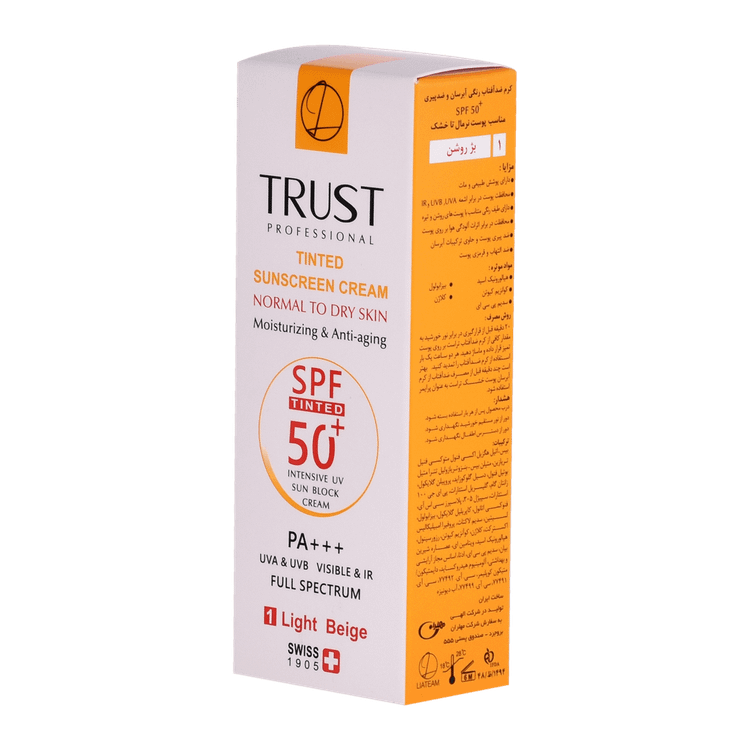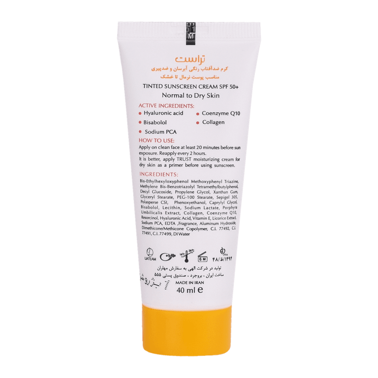 کرمهای ضدآفتاب رنگی تراست با SPF50+ از مرغوبترین و جدیدترین مواد اولیه موثره دارای حداکثر حفاظت دربرابر پرتوهای مضر خورشید ساخته شدهاند؛ این کرم با وجود بهرهمندی از بافتی سبک، دربرابر آسیبهای وارده توسط نور خورشید به خوبی از پوست محافظت و با مهار رادیکالهای آزاد از تخریب سلولهای پوستی جلوگیری میکند. همچنین با مصرف این محصول، بدون بسته شدن منافذ پوستی و ایجاد خلل در تنفس سلولهای پوستی، پوستتان آبرسانی میشود.