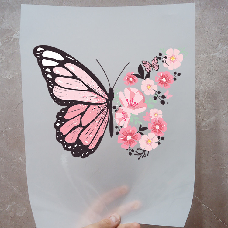 استیکر پارچه و لباس مدل دی تی اف طرح پروانه گل کد H15.185 مجموعه 4 عددی