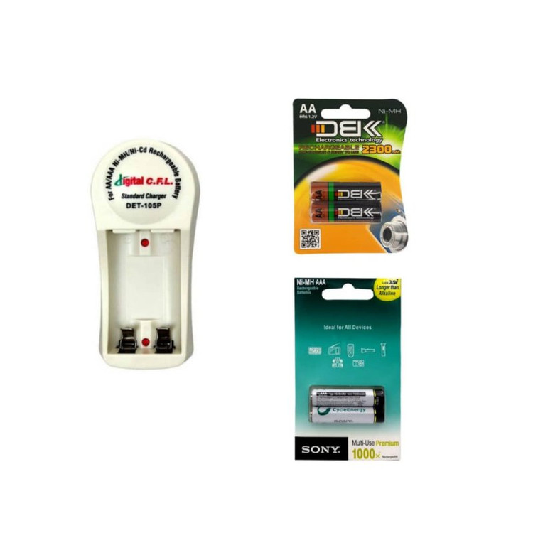 شارژر باتری سی اف ال مدل DET-105P به همراه باتری قلمی قابل شارژ DBK 2300mAh و نیمقلمی سونی