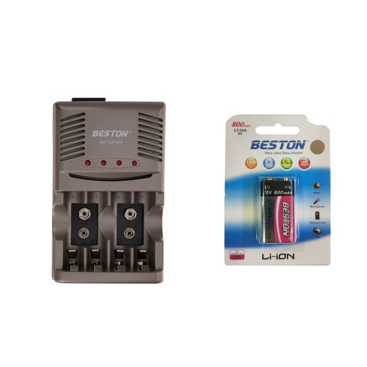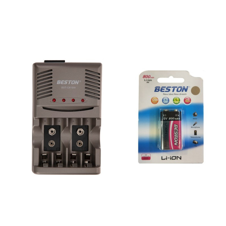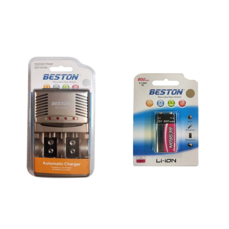 شارژر باتری بستون C819W به همراه باتری کتابی 9 ولت لیتیوم 800mAh