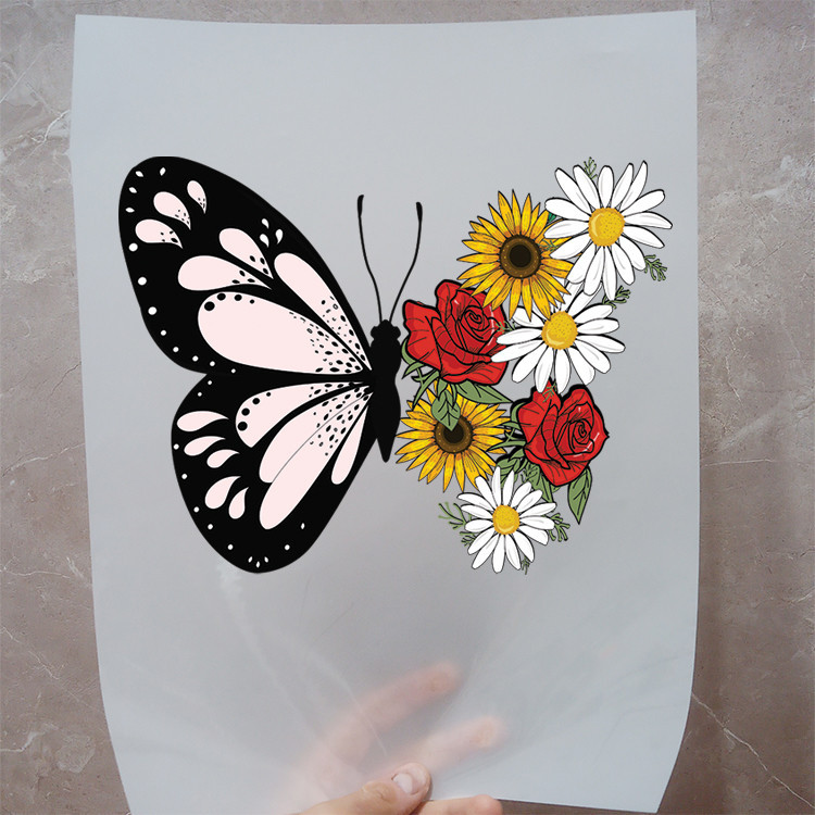 استیکر پارچه و لباس مدل دی تی اف طرح پروانه گل کد H20.96 مجموعه 3 عددی