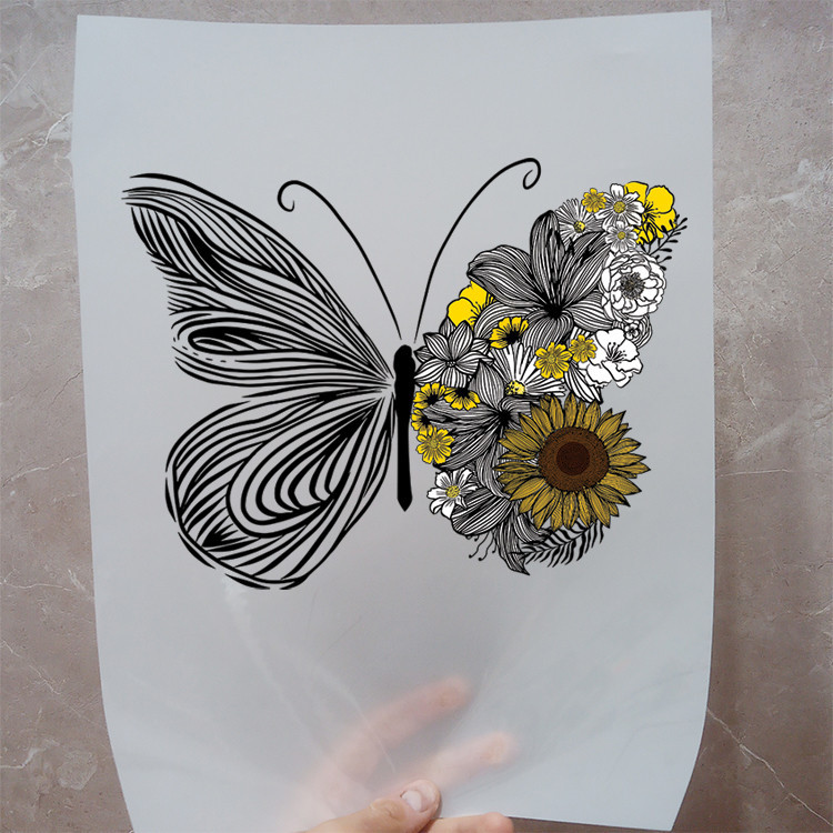 استیکر پارچه و لباس مدل دی تی اف طرح پروانه گل کد H20.111 مجموعه 3 عددی