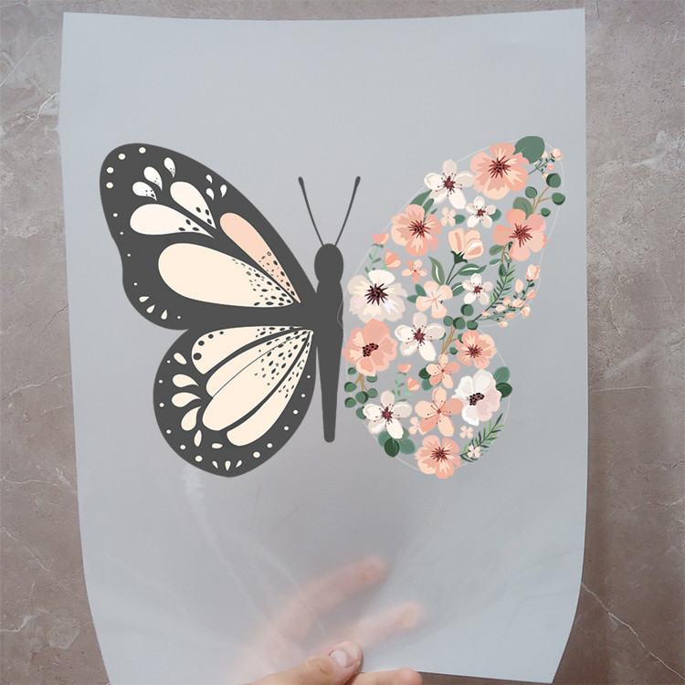 استیکر پارچه و لباس مدل دی تی اف طرح پروانه گل کد H20.137 مجموعه 3 عددی