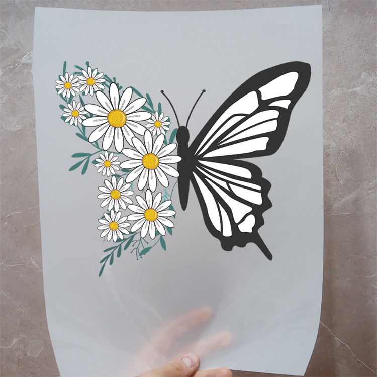 استیکر پارچه و لباس مدل دی تی اف طرح پروانه گل کد H20.175 مجموعه 3 عددی