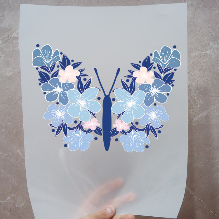 استیکر پارچه و لباس مدل دی تی اف طرح پروانه گل کد H20.164 مجموعه 3 عددی