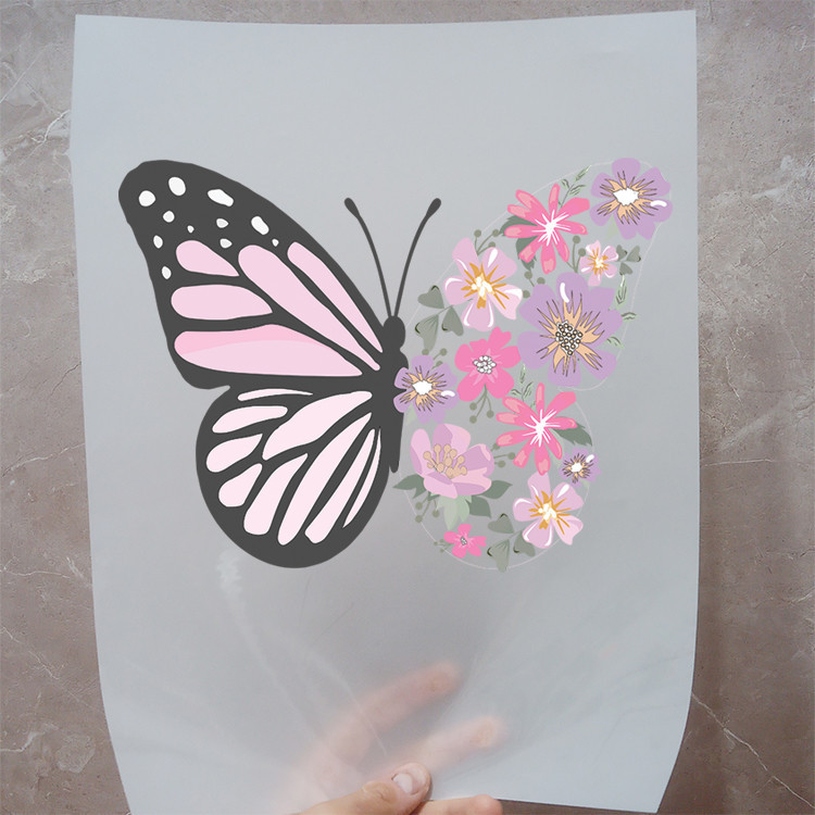 استیکر پارچه و لباس مدل دی تی اف طرح پروانه گل کد H20.181 مجموعه 3 عددی