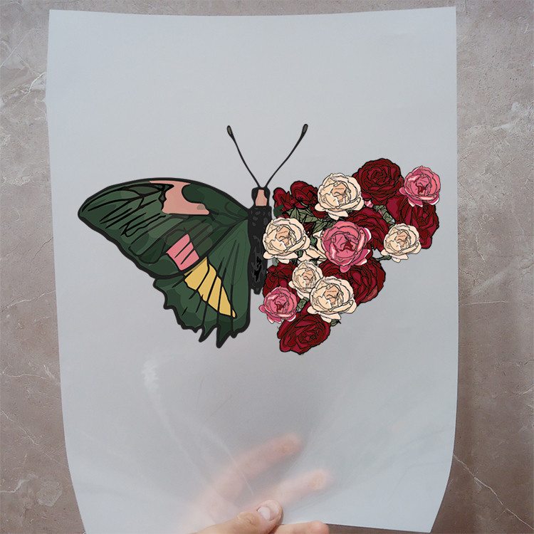 استیکر پارچه و لباس مدل دی تی اف طرح پروانه گل کد H20.201 مجموعه 3 عددی