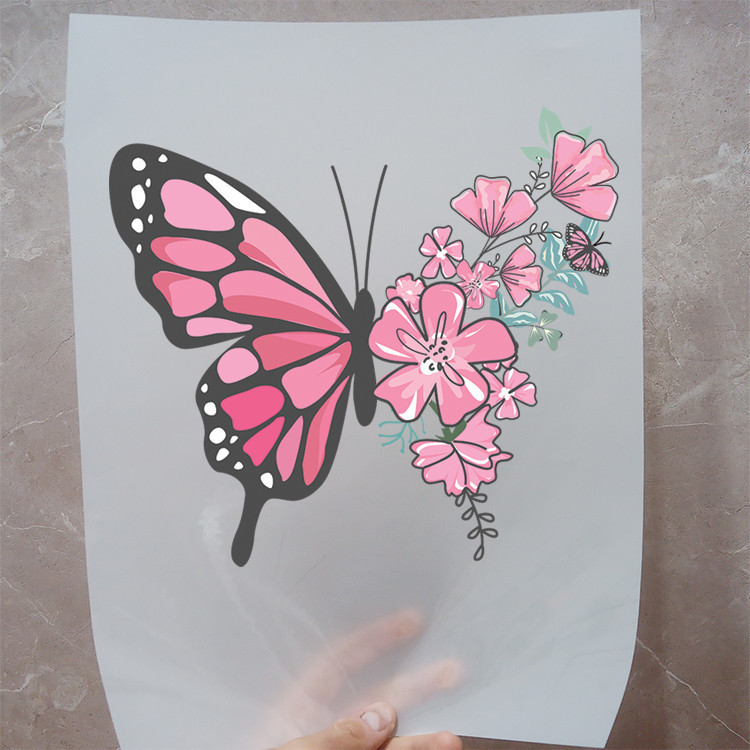 استیکر پارچه و لباس مدل دی تی اف طرح پروانه گل کد H15.182 مجموعه 4 عددی