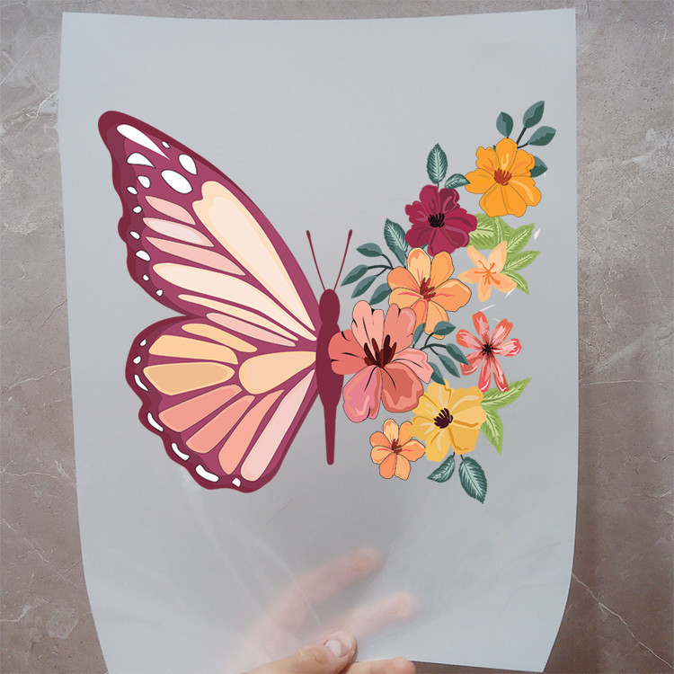 استیکر پارچه و لباس مدل دی تی اف طرح پروانه گل کد H15.196 مجموعه 4 عددی