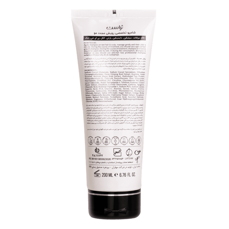 قطع ریزش مو/ تقویت فولیکول موی سر/ رویش مجدد تار مو/ ضخیم کننده تار مو / فاقد ماینوکسیدیل، سولفات، سیلیکون، پارابن، الکل و نمک
