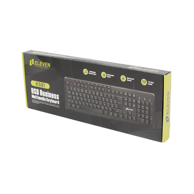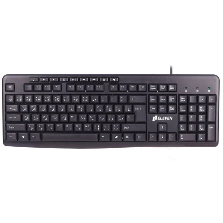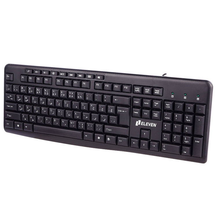 شرکت ELEVEN یکی از شرکت های فعال در عرصه تولید لوازم جانبی هوشمند به حساب می آید که تولیداتی مانند موس، کیبورد و… را به بازار عرضه می کند. این شرکت با معرفی محصولات متنوع با مشخصات و کیفیت مناسب توانسته نظر مخاطبان را به خود جلب کند. کیبورد مدل K501 به صورت ارگونومیک توسط شرکت ELEVEN طراحی شده و در استفاده های طولانی مدت کاربر را دچار خستگی نمی کند. کیبورد ELEVEN به صورت پیش فرض دارای اعداد و حروف فارسی می باشد و نیازی به استفاده از برچسب برای این کیبورد نیست. کلید های کیبورد ELEVEN مدل K501 با فاصله مناسب از یکدیگر چیده شده اند تا کاربران به راحتی هر چه بیشتر بتوانند با کیبورد به تایپ متون خود بپردازند. شرکت ELEVEN برای این کیبورد از قسمت جداگانه اعداد هم استفاده کرده تا تایپ اعداد با این کیبورد با سرعت بیشتری صورت بگیرد. ویژگی هایی مانند طراحی ارگونومیک، عمر مناسب و استفاده از پورت USB برای اتصال به رایانه یا دستگاه DVR، این کیبورد را به یک محصول مناسب جهت تایپ متون برای کاربران تبدیل می کنند.