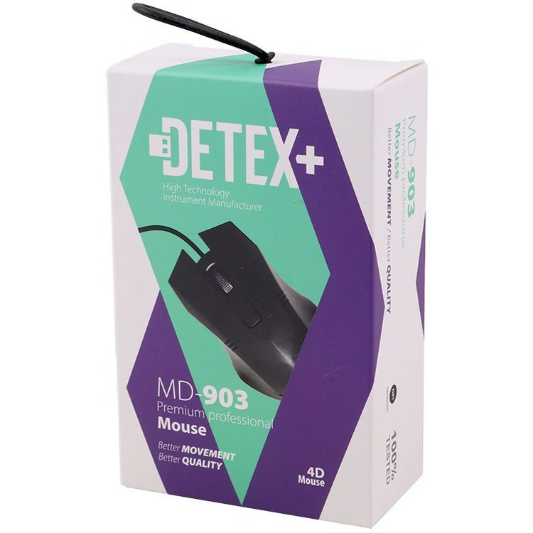 موس سیم دار دیتکس پلاس مدل MD-903 مجهز به رابط USB جهت اتصال به لپ تاپ، کامپیوتر می باشد . جنس بدنه از پلاستیک با کیفیت مقاوم در برابر فشار و ضربه و همچنین طراحی شده به صورت ارگونومیک، قابلیت کارکردن با هر دو دست را دارا می باشد . طول سیم ۱۱۱ سانتی متر با روکش پلاستیکی مقاوم در برابر کشش و خمیدگی است این ماوس دارای ۳ کلید فیزیکی بر روی بدنه، نوع حسگر اپتیکال با دقت ۱۶۰۰ نقطه بر اینچ می باشد.