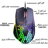 ماوس GM6 از برند ELEVEN جدیدترین ماوس گیمینگ برند ایلون هستش. این ماوس حرفه ایی با طراحی خاص باعث شده تا بعد از ساعت ها استفاده نه دست و نه مچ شما ناراحت شود. این ماوس با بدنه لانه زنبوری شما را از عرق کردن کف دست راحت میکند و نورپردازی فوق العاده ایی را به نمایش میگذارد. برای یک گیمر یکی از مهمترین قطعاتی که به صورت فیزیکی با آن در ارتباط هستش ، ماوس کامپیوتر هست به همین دلیل ماوس گیمینگ باید استاندارد ها و المان های مختلفی داسته باشد. ماوس GM6 برند ELEVEN همانطور که توضیح داده شد بدنه لانه زنبوری دارد تا از عرق کردن دست جلوگیری کند اما از دیگر اپشن های این ماوس هفت کلید بودن آن هستش که تمام امکانات را به یک گیمر میدهد و با برنامه ایی که داخل سایت خوده برند هستش شما میتوانید ماوس را شخصی سازی کنید تا لذت بازی را دو چندان کنید. کابل این ماوس به طول 1.8 متر هستش که با روکش کنفی تقویت شده تا از آسیب دیدن جلوگیری کند همچنین محل اتصال این ماوس با یک محافظ لاستیکی تقویت شده تا به هیچ عنوان آسیب نبیند. دیگر قابلیت ماوس GM6 قابلیت تنظیم حساسیت هستش که به لطف سنسور اپتیکال آن، حساسیت آن را تا عدد 7200 DPI شما میتوانید تنظیم کنید. GM6 با نورپردازی فوق العاده ظاهری زیبا به میز شما میدهد و با برنامه خود ماوس شما میتوانید نورهای آن را عوض کنید و به دلخواه خود انتخاب کنید. عمر کلید های این ماوس تا بیش از 3 میلیون کلیک هستش.