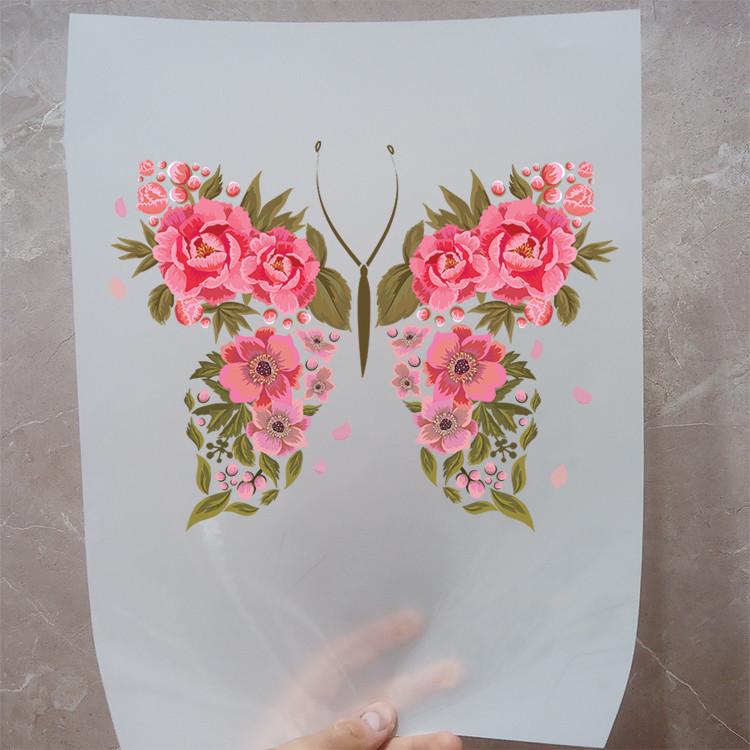 استیکر پارچه و لباس مدل دی تی اف طرح پروانه گل کد H20.153 مجموعه 3 عددی