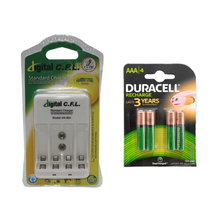 شارژر باتری سیافال مدل HA-804 به همراه باتری نیم قلمی قابل شارژ دوراسل 750mAh بسته ۴ عددی