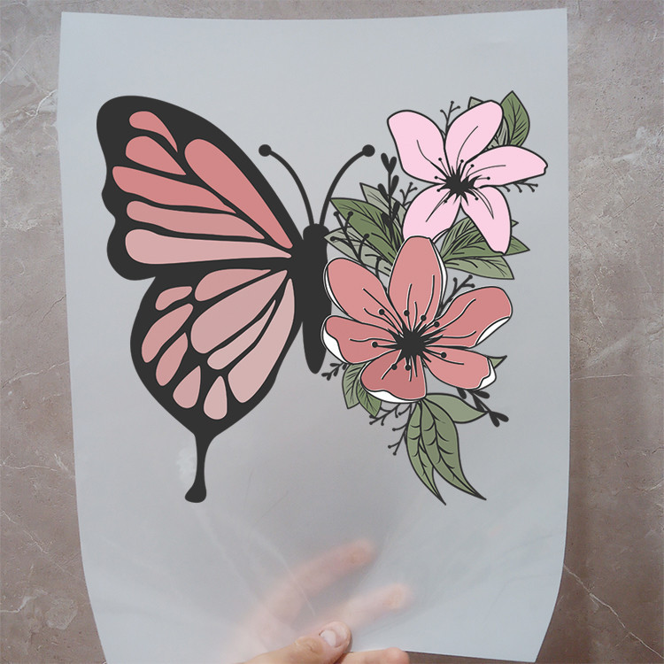 استیکر پارچه و لباس مدل دی تی اف طرح پروانه گل کد H20.158 مجموعه 3 عددی