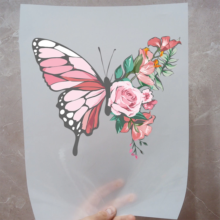 استیکر پارچه و لباس مدل دی تی اف طرح پروانه گل کد H20.8 مجموعه 3 عددی