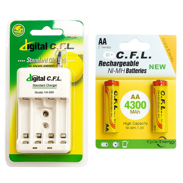 این مجموعه شامل شارژر باتری سی اف ال مدل HA-805 و دو عدد باتری قلمی قابل شارژ با ظرفیت بالا است. شارژر HA-805 با قابلیت شارژ انواع باتریهای قلمی و نیمقلمی و کتابی، انتخابی مناسب برای کاربران خانگی و حرفهای محسوب میشود. باتریهای همراه این پک نیز با ظرفیت 4300 میلیآمپر ساعت، انرژی طولانیمدت را برای دستگاههای پرمصرف فراهم میکنند.