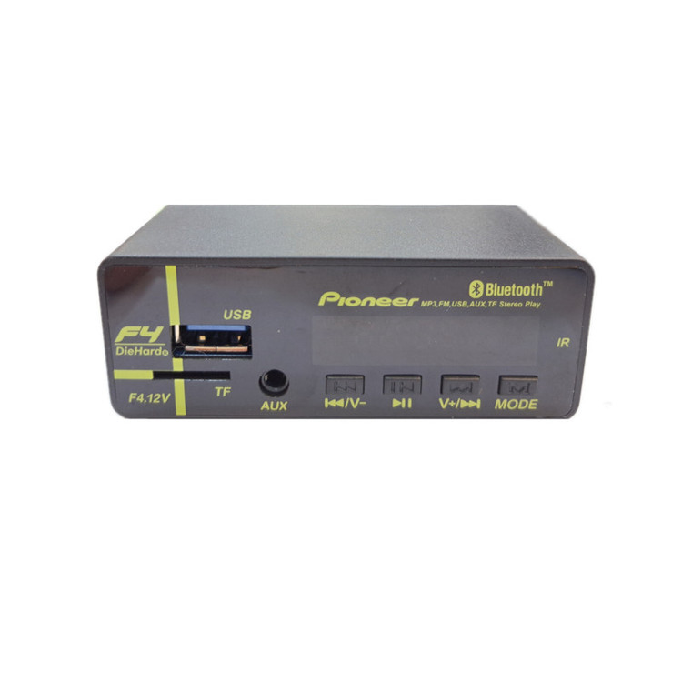 همه ی ما دستگاه های قدیمی داریم که ازکیفیت خوبی برخوردارند. ولی ویژگی های جدیدی مثل USB و بلوتوث را ندارند و این باعث می شود که دیگر با تکنولوژی های جدید، ان دستگاه قابل استفاده نباشد. و شما می توانید با استفاده از این برد پلیر بلوتوث F4 این قابلیت را به دستگاه خود بدهید. در این مواقع یا باید دستگاه نسل جدید خرید و یا ویژگی های مورد نظر را به آن اضافه کرد. بهترین گزینه که به نسبت بسیار مقرون به صرفه هم هست استفاده از برد پلیر بلوتوث F4 یا اصلاحاً فلش خور کردن دستگاه پخش است. قاب این دستگاه جلوه خاصی دارد و مشکلی از نطر ظاهری ندارد. تنوع این برد پلیر بلوتوث ها باعث می شود شما نسبت به نیاز به ویژگی های بیشتر، برد مورد نظر خود را تهیه کنید. این برد دارای قاب می باشد و بر روی سیستمهایی مانند دستگاه پخش ماشین قابل نصب است. برای استفاده از این ماژول ها شما باید خروجی صوت تعبیه شده روی مدار را به کمک سوکتی که همراه با آن برای شما می فرستیم به ورودی صوت (AUX) دستگاه خود وصل کنید. در این مرحله تنها کاری که باید انجام شود روشن کردن برد است. خوشبختانه این ماژول با ولتاژ 6V تا 12V قابل راه اندازی است و این به آن معناست که به راحتی می توان با برق ماشین از آن استفاده کرد.