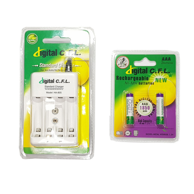 شارژر باتری سیافال مدل HA-805 همراه ۲ باتری نیمقلمی شارژی ۱۸۵۰mAh