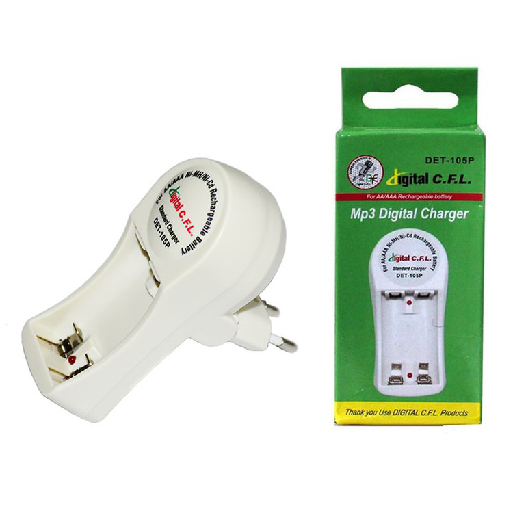 شارژر باتری سی اف ال مدل DET‑105P به همراه ۲ عدد باتری نیمقلمی شارژی ۶۵۰ mAh