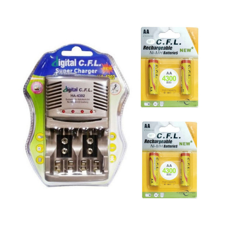 شارژر باتری سیافال مدل HA-4302 همراه باتری قلمی شارژی ۴۳۰۰mAh بسته ۴ عددی
