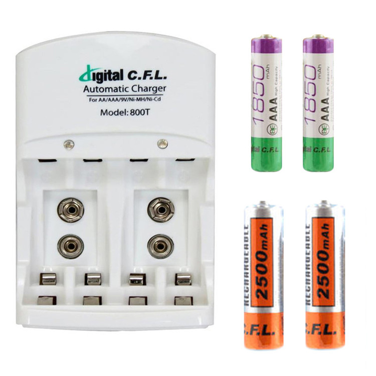 شارژر باتری دیجیتال CFL مدل 800T به همراه باتری قابل شارژ نیمقلمی 1850mAh و قلمی 2500mAh