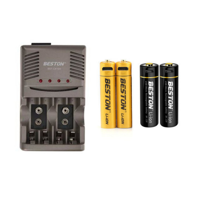 شارژر باتری بستون مدل C819 به همراه 4 عدد باتری لیتیوم یون
