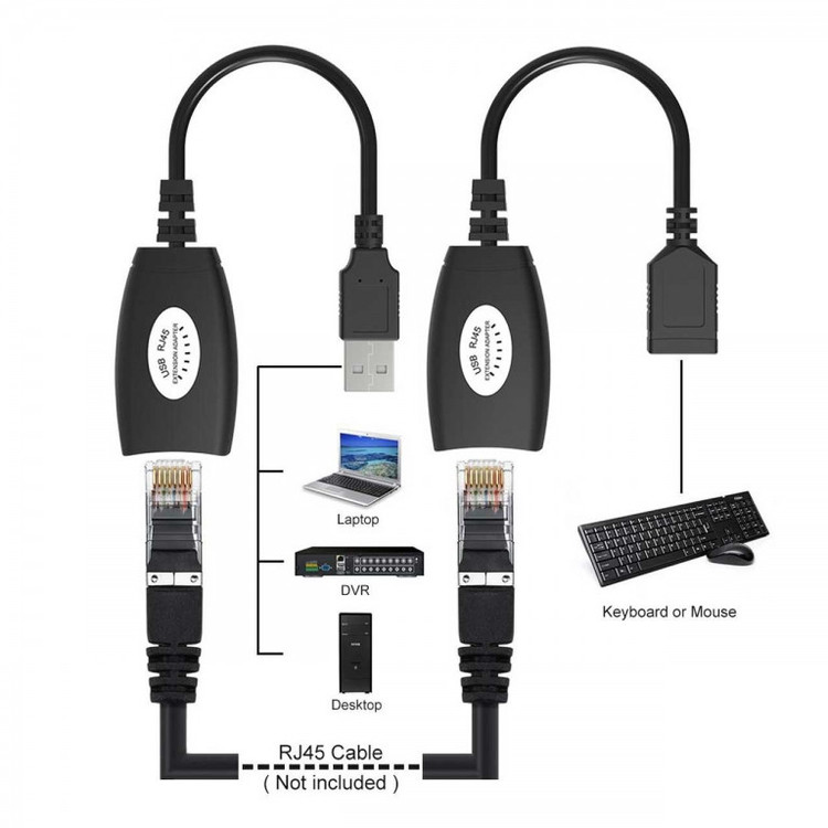 سوکت مادگی USB | سوکت نری USB | پشتیبانی از برد 50 متر | درگاه RJ45 در دو طرف | بدون نیاز به آداپتور | پشتیبانی از CAT6 ،CAT5 و CAT5e