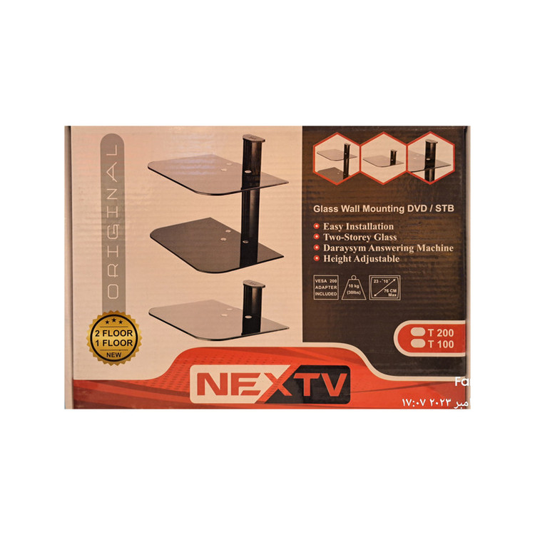 شلف دیواری نکست تی وی مدل T200 با طراحی مینیمالیستی و کیفیت ساخت بالا، گزینهای مناسب برای قرار دادن دستگاههای صوتی و تصویری مانند گیرنده دیجیتال، کنسول بازی و DVD پلیر است. این شلف دارای دو طبقه شیشهای با ابعاد 35 × 30 × 3 سانتیمتر و ضخامت 20 میلیمتر میباشد. جنس شیشه از نوع سکوریت با مقاومت بالا است و نصب آن بهراحتی انجام میشود.