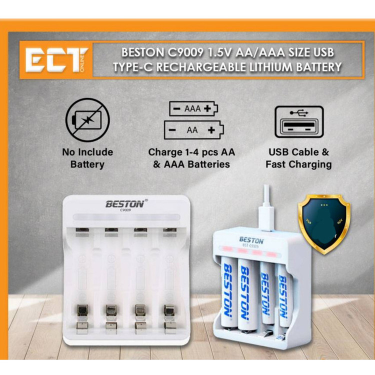 🔋 نوع باتری قابل شارژ: AA، AAA و ۹ ولت