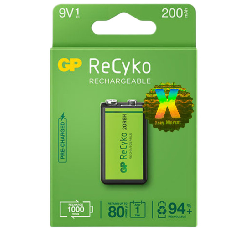 باتری کتابی جی پی مدل Rechargeable Recyko 200mAh 9V XRAY