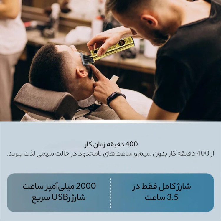 این دستگاه به همراه شانههای تنظیم اندازه، کابل شارژ، روغن مخصوص و برس تمیزکننده ارائه میشود تا تمام ابزارهای لازم برای اصلاحی دقیق و راحت را در اختیار شما قرار دهد.
