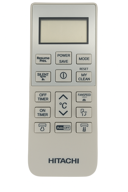 ریموت HITACHI مناسب انواع کولرهای گازی دیواری این برند بوده و تمام قابلیتهای ضروری از جمله کنترل دما، تایمر، تنظیمات فن، حالتهای مختلف سرمایش و گرمایش، حالت بیصدا (SILENT)، و عملکرد MY CLEAN را پوشش میدهد. صفحه نمایش دیجیتال بزرگ آن نیز به کاربر کمک میکند تا تنظیمات را بهوضوح مشاهده کند.