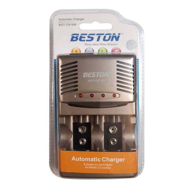 شارژر باتری بستون مدل BST‑C819W برای باتریهای AA، AAA، ۹ ولت و لیتیوم