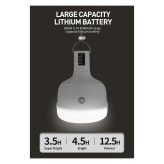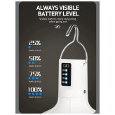 مجهز بودن به باتری داخلی قابل شارژ باعث میشود بدون نیاز به باتریهای جداگانه یا برق مستقیم، بتوانید از نور آن استفاده کنید. طراحی آن بهگونهای است که در عین سبک بودن، نوردهی مناسبی را در فضاهای کوچک و متوسط فراهم میکند. شارژ شدن آن از طریق کابل USB انجام میشود و میتوان با پاوربانک، لپتاپ یا آداپتور موبایل بهراحتی آن را شارژ کرد.