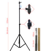 ارتفاع پایه از حدود 80 تا 220 سانتیمتر قابل تنظیم است و با وجود وزن سبک خود (حدود 1.45 کیلوگرم)، میتواند تا 5 کیلوگرم تجهیزات را تحمل کند. جنس بدنه از آهن مقاوم با اتصالات پلاستیکی فشرده ساخته شده و رنگ مشکی مات با پوشش الکترواستاتیک دارد که هم دوام و هم ظاهر حرفهای را تضمین میکند.